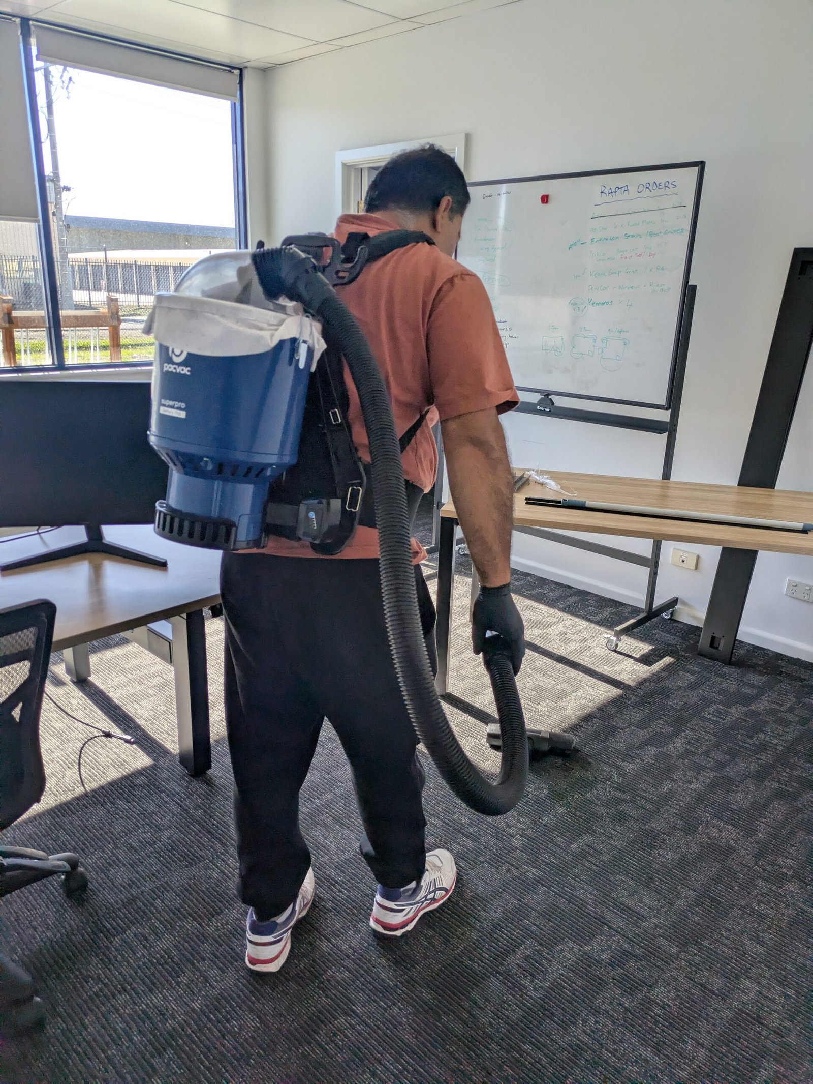 We use industrial-grade equipment, eco-friendly cleaning solutions, high-pressure washing, floor scrubbing, and dust removal techniques to ensure thorough cleaning.